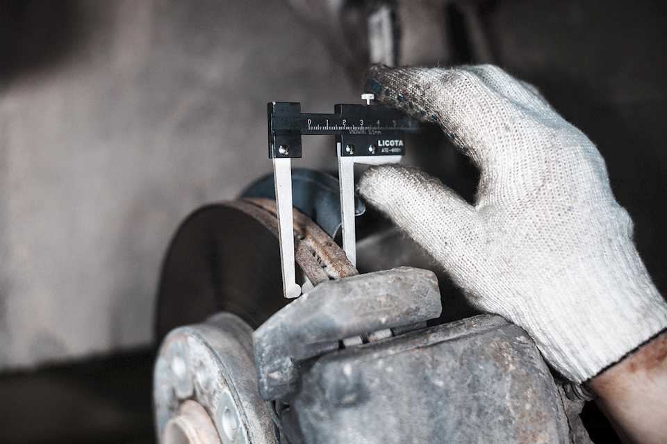 При большом износе, более 50% поверхности, цилиндры в суппортах выдвигаются на максимальную высоту (чересчур далеко) – это может привезти к перекашиванию, заклиниванию и даже к течи суппорта (когда вытечет часть тормозной жидкости). Также тонкий изношенный диск колодки очень быстро разогреют, буквально докрасна – эффективность торможения упадет в разы, при быстром остужении (заехали в лужу), может даже потрескаться, а это очень опасно при движении.Определить толщину можно и самому. Просто берем инструкцию по эксплуатации своего автомобиля, либо выкачиваем ее в интернете. Затем просто снимаем колесо и смотрим износ. Сделать это можно даже без особых приспособлений, просто посмотрите верхнюю «кромку», она обычно выступает (своего рода максимальная отметка) и дает вам представление об износе. Достаточно просто замерить линейкой глубину, если больше 2 мм, однозначно нужна замена.Если вы хотите точно измерить износ – то нужно взять штангенциркуль и замерить его по бокам. Дальше сравнить с рекомендациями по эксплуатации своего автомобиля. Менять сразу нужно оба (на одной оси), нельзя заменить один, а другой оставить, таким образом, вы разбалансируете машину при торможении.