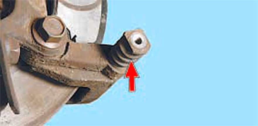 - Вкрутить крепежный болт от направляющей тормозного суппорта;
