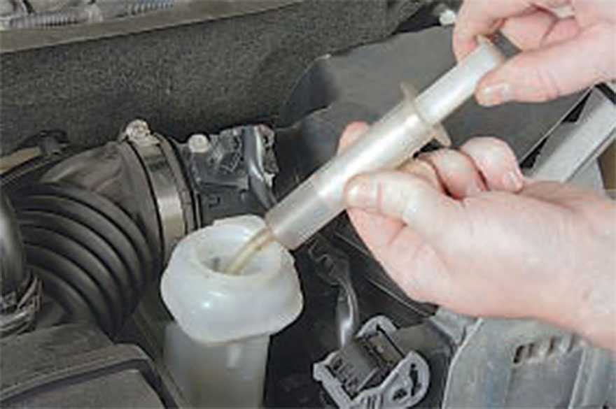 Если уровень близок к метке «MAX», необходимо откачать часть жидкости (например, медицинским шприцем или резиновой грушей), потому что после замены изношенных колодок новыми уровень поднимется.