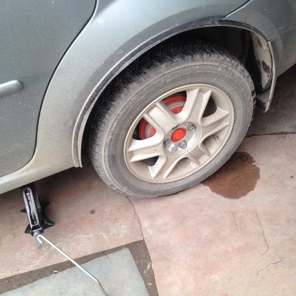 1. Снимаем колесо и страхуемся от падения авто. Я опустил рычаг на подставку. В общем соблюдаем технику безопасности.