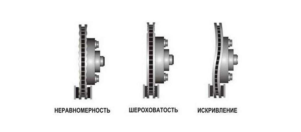 Он быстро перегревается и легко деформируется. На диске недопустимо малой толщины появляются трещины или сколы. Ездить на авто с поврежденными дисками небезопасно.