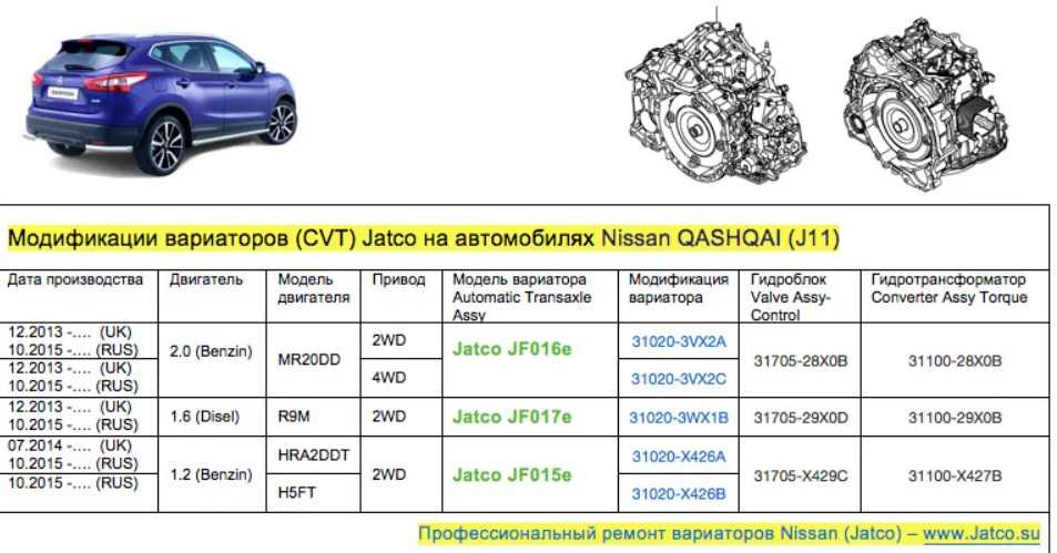 С какими двигателями устанавливались вариаторные коробки на Ниссан Кашкай: