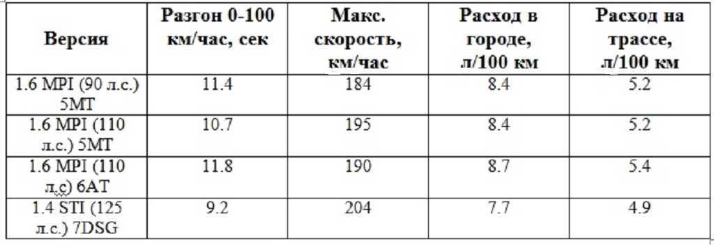 | 1.4 TSI MT | 2012-2014 | Бензиновый CPTA на 140 л. с., МКПП, передний |
