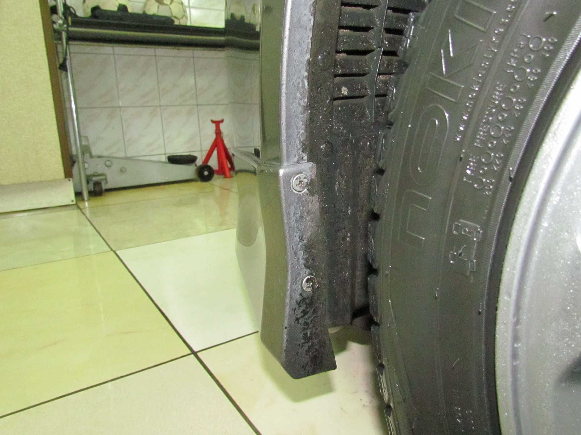 Следующим этапом выкручивают несколько саморезов на передних подкрылках со стороны колеса. При помощи отвертки отгибают подкрылок.