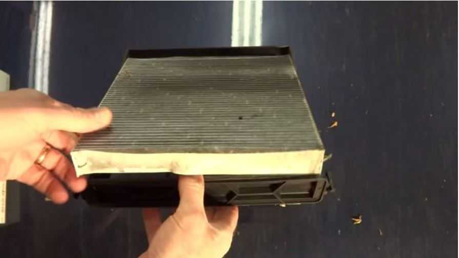 Теперь можно просто вытащить старый фильтр. Делайте это максимально аккуратно и старайтесь не допустить попадание пыли, грязи и мусора в салон автомобиля