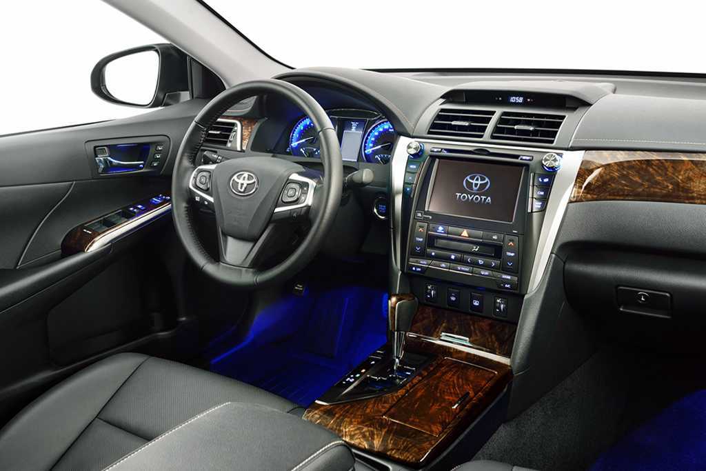Как и подобает модели бизнес-класса Тойота Камри 50 неплохо нафарширована. Все оборудование, служит надежно, разве что многие владельцы отмечают, что датчик дождя не во всех случаях работает корректно – например, бывает, что стекло уже может быть полностью заляпано каплями, а дворники все еще не срабатывают.