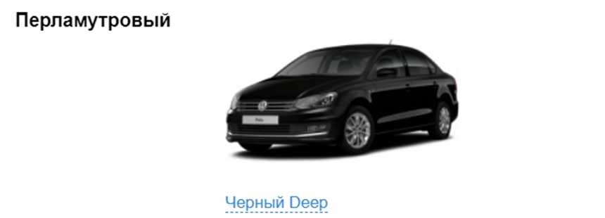 Для примера рассмотрим цветовое исполнение кузова модели «Фольксваген Поло» 2013 года. В каталоге производителя представлены 10 оттенков, в которых выпускалась модель.