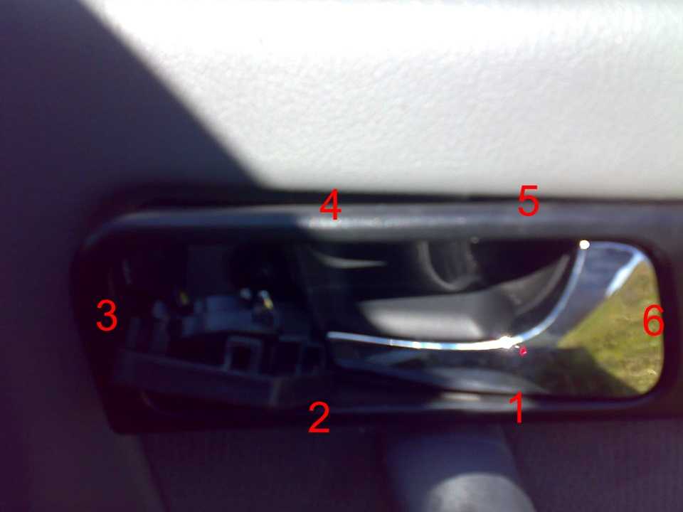 Получилось правда на пассажирской, для того чтобы не поломать последнюю защелку нужно открутить шуруп держащий основание ручки открытия двери, для этого нужно снячала снять пищалку, снимается легко, свободный ход самой ручки увеличиться, и различными манипуляциями движения право лево я смог таки вытащить накладку.