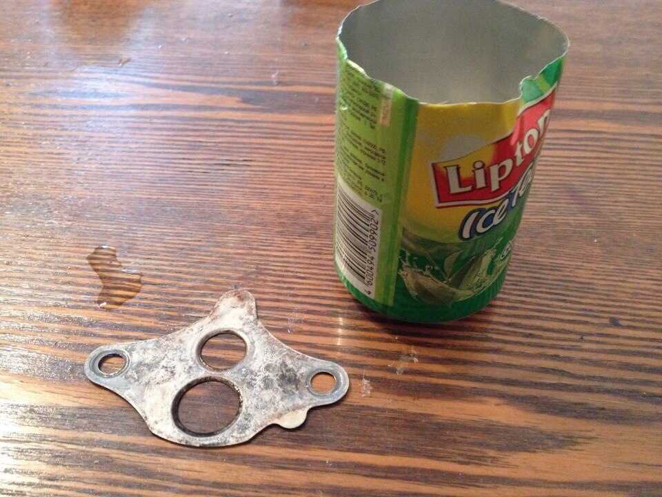 Ребята вырезают из алюминиевой банки прокладки, но я вдруг вспомнил, что у меня есть кусок паранита(материал для изготовления пркладок).