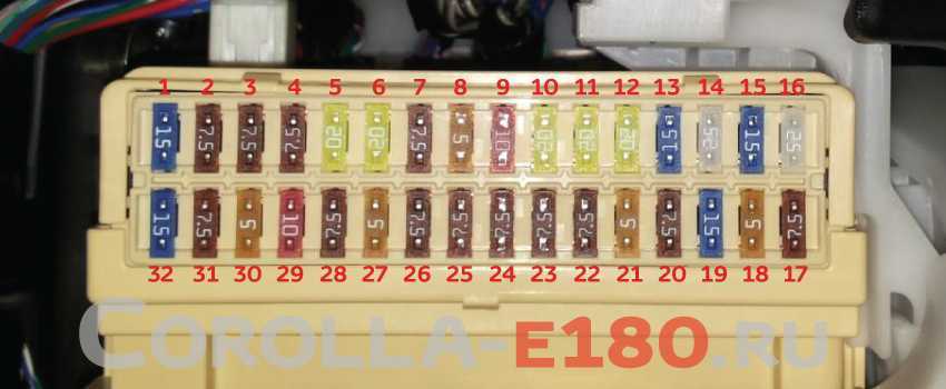 | 31 | 7.5 | Антиблокировочная система тормозов, адаптивный сеет, аудиосистема, автоматическое включение фар, система помощи при экстренном торможении, генератор, комбинация приборов, система распределения «стоп-старт», ближний сеет фар, задние фонари, иммобилизатор. блок управления электрооборудованием кузова, система напоминания об оставленном в замке зажигания ключе, система напоминания о невыключенных фарах, навигационная система, мощи при парковке, розетка для подключения дополнительных электропотребителей, дальний свет фар, сигнализатор том ремне безопасности водителя, замок зажигания, система управления центральным замком |