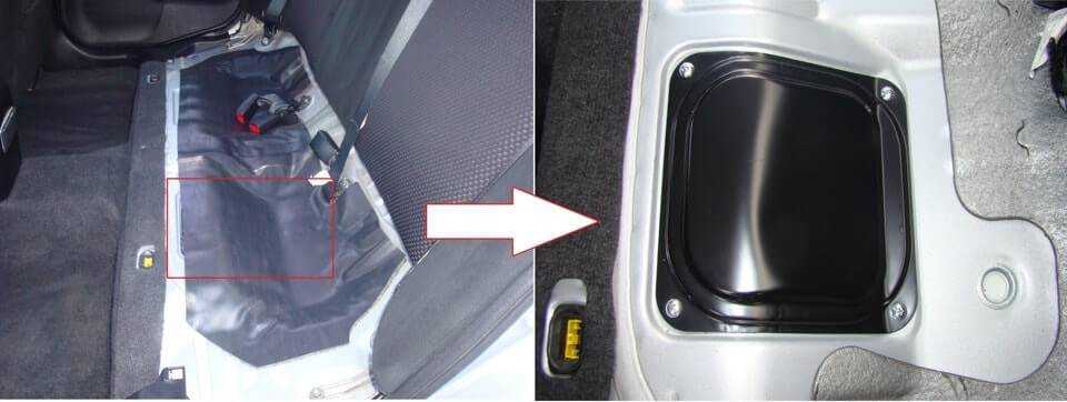 Доступ к люку топливного модуляБензонасос вместе с топливным фильтром и вспомогательными элементами образуют топливный модуль, который расположен в бензобаке. Реле бензонасоса в десятом Лансере находится в блоке предохранителей. Добраться до реле можно, разобрав этот блок. Доступ к блоку предохранителей осуществляется через салон автомобиля. Доступ к топливному модулю Лансер 10 также осуществляется через салон автомобиля. Для начала нужно снять подушку заднего сидения. Делается это без помощи какого-либо специального инструмента — подушка закреплена на специальные посадочные крючки с двух сторон и без особых усилий снимается руками. Под подушкой находится люк топливного модуля.