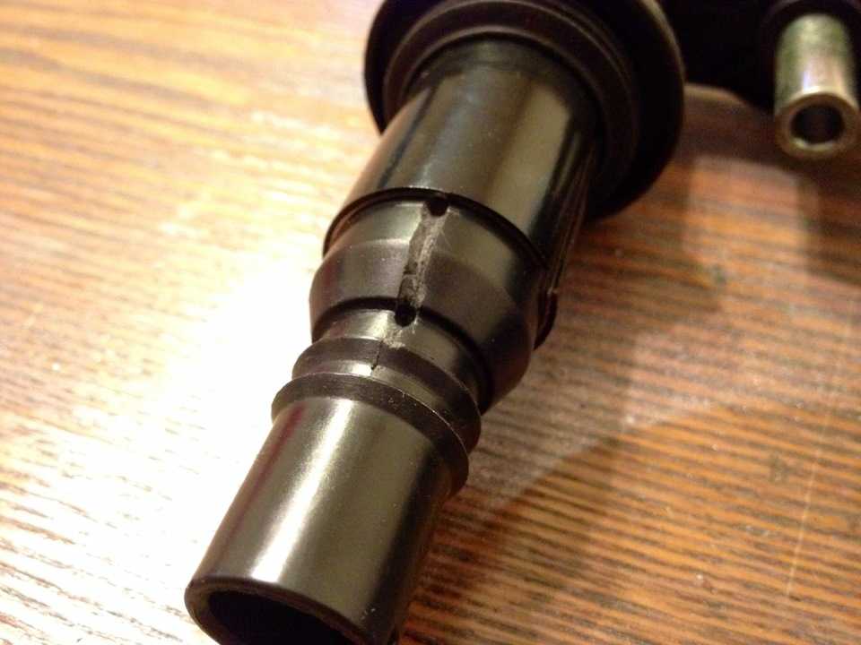 Со временем наконечники катушек трескаются и свечу начинает пробивать что собственно тоже является причиной выхода катушки из строя, троению двигателя и потери мощности, а так же появляется коронный разряд и черный нагар, в данной ситуации наконечники можно оживить например обмотав их изоляционной лентой но лучше заменить их.
