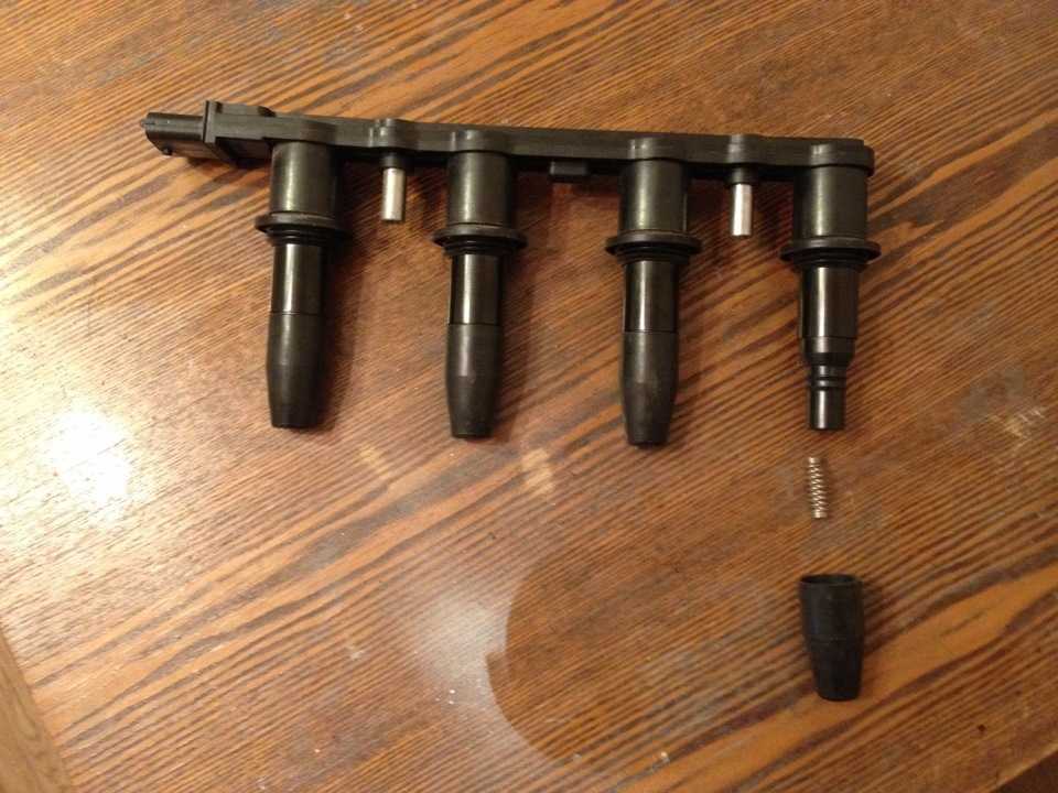 Внимательно осмотрите катушку на предмет признаков трещин, ожогов, плавления или токов утечки. Проверьте состояние пружинки внутри колпачка. Это часто указывает на проблему с катушкой, поэтому проверьте внимательно.