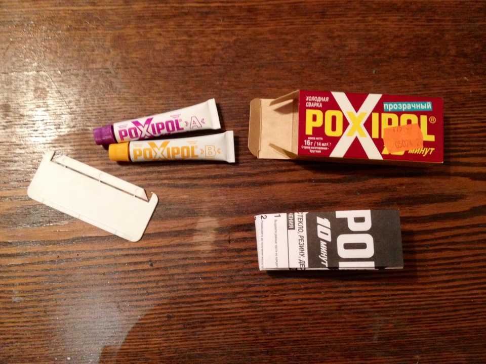 Далее необходимо взять эпоксидную смолу и аккуратно заполнить просверленное отверстие и канавку.