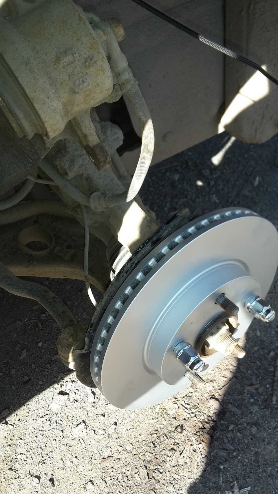 Монтаж заднего диска аналогичен переднему. Главным отличием является необходимость предварительно опустить ручник.