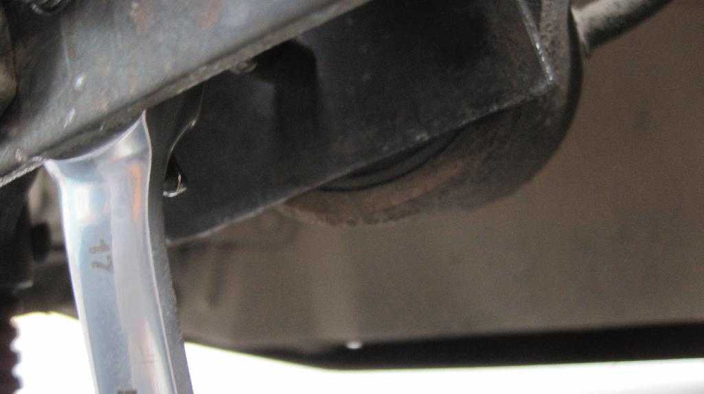 2. После этого откручиваем два болта с помощью рожкового или накидного ключа на 14. Иногда они очень сильно прикипают и открутить их бывает большой проблемой, поэтому предварительно может потребоваться побрызгать WD’шкой: