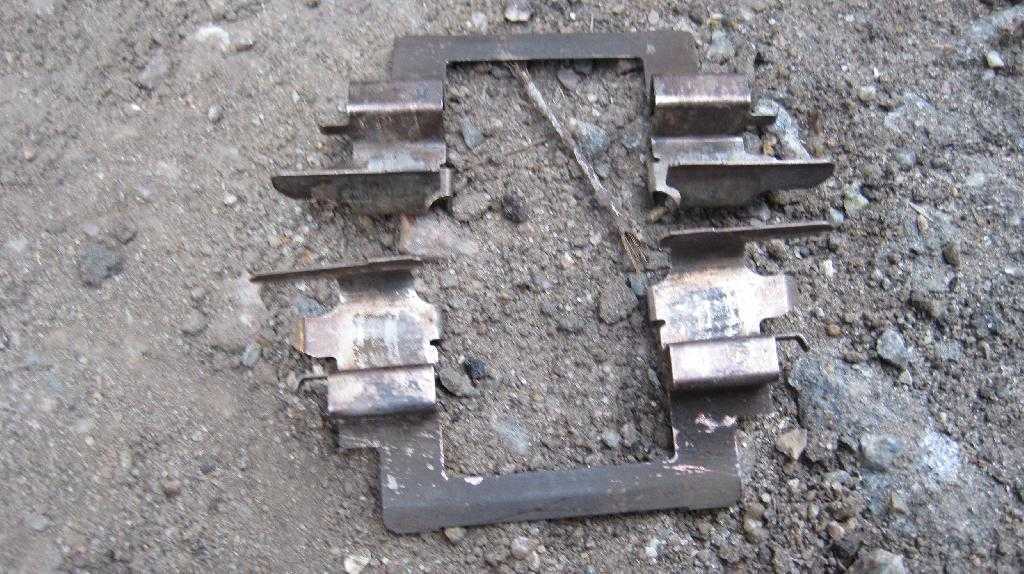 8. Достаем маленькие металлические скобки, в которых держатся тормозные колодки