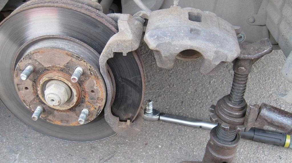 Ставим суппорт на место. Затягиваем болт моментом 45 Нм.