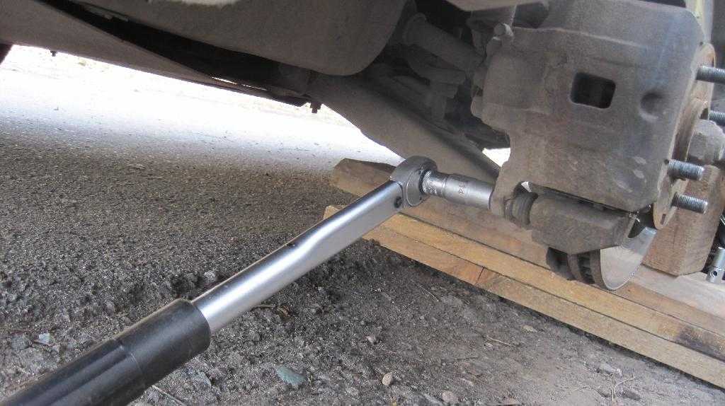 Если все хорошо, ставим колесо на место и затягиваем гайки колеса моментом в 135 Нм. И опускаем домкрат.