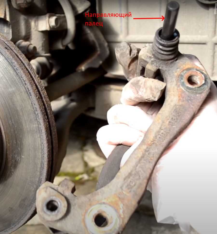 - Ключом на 14 откручиваются направляющие шпильки тормозного суппорта;