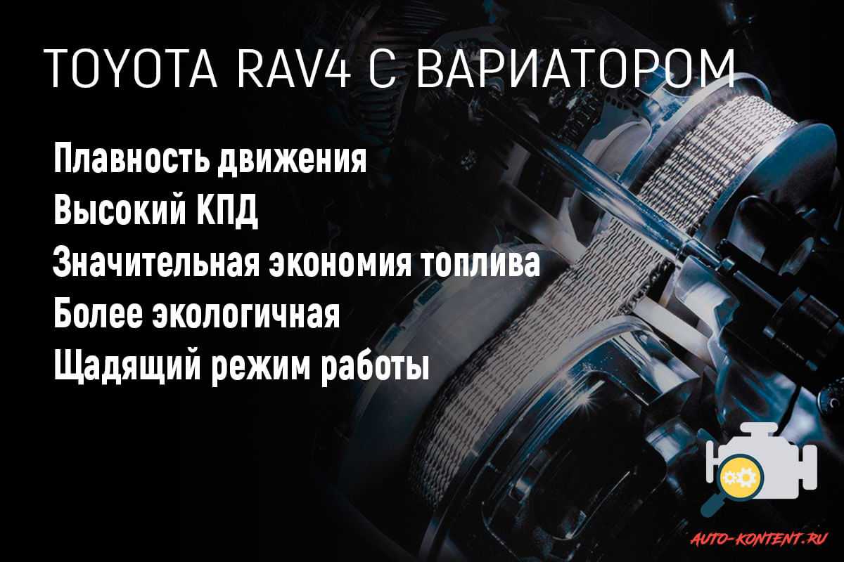 На автомобили Toyota RAV4 устанавливали бесступенчатые трансмиссии (вариаторы) серии Toyota K. Они производились компанией Aisin, которая специализируется на выпуске автомобильных запчастей и компонентов, входит в группу компаний Тойота. В серии K используются 2 шкива, соединенных ремнем, которые могут плавно изменять передаточные числа в непрерывном диапазоне.