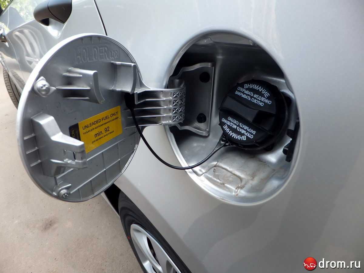 Горячий предмет. Имеется несколько разновидностей запорных устройств для горловины бензобака. На некоторых автомобилях он совсем не закрывается, а прижатие крышки выполняется за счет пружин и резиновых уплотнителей. Чтобы их открыть, используется небольшое отверстие для пальца, после просовывания которого стоит потянуть лючок на себя. Расположение же замка находится в крышке горловины, а чтобы его открыть, нужен ключ зажигания. После того, как она будет открыта, пробка снимается совместно с ключом.