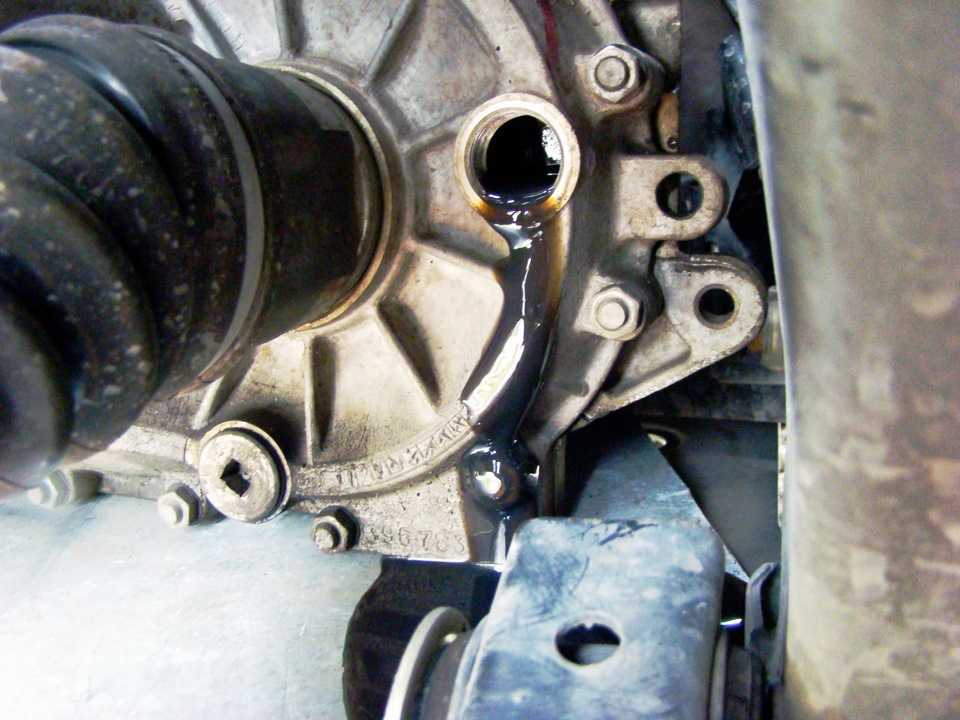 Если же масла меньше или его совсем не видно визуально, то следует обязательно добавить до нужного уровня с помощью шприца. При этом, стоит осмотреть картер коробки на признаки подтекания уплотнительных элементов (сальников, шайб). Если какие-то детали вызывают подозрение, то обязательно заменить их. При доливке масла, определить достаточный уровень просто. Масло начнёт вытекать из контрольного отверстия. После проведения процедуры обязательно надо вытереть насухо картер.