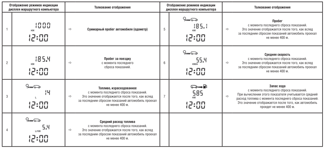 Режимы индикации маршрутного компьютера
