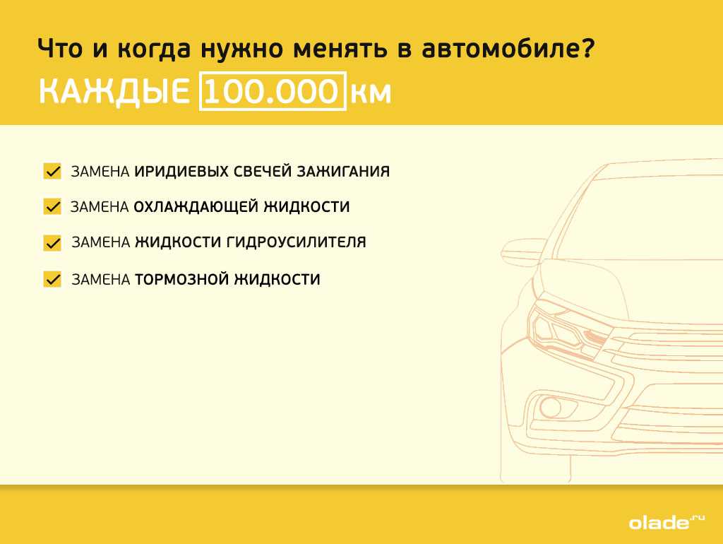 - Замена иридиевых свечей зажигания. Иридиевые свечи зажигания более эффективны и служат на порядок дольше, поэтому их замена требуется раз в 100 тысяч километров.