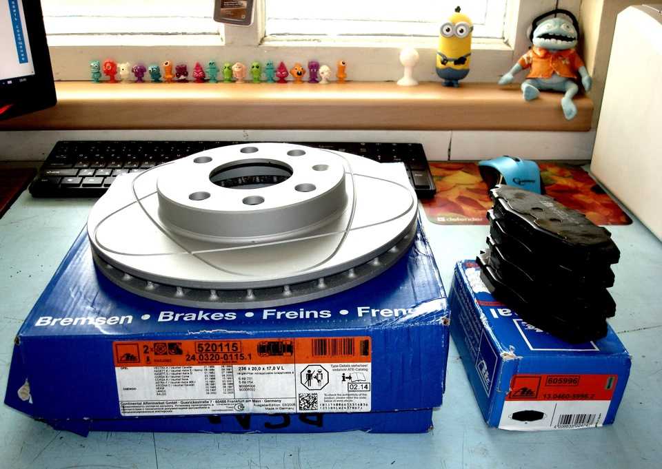 Поэтому я пошел по другому пути, мои тормозные диски Ferodo DDF 151 (остаток 19 мм.) и колодки Otto Zimmermann 23241.160 (Износ 50%) уже начали меня огорчать своей «эффективностью» торможения и было принято решения улучшить тормозную систему без комплексного переоборудования, а просто заменой на более качественные комплектующие.