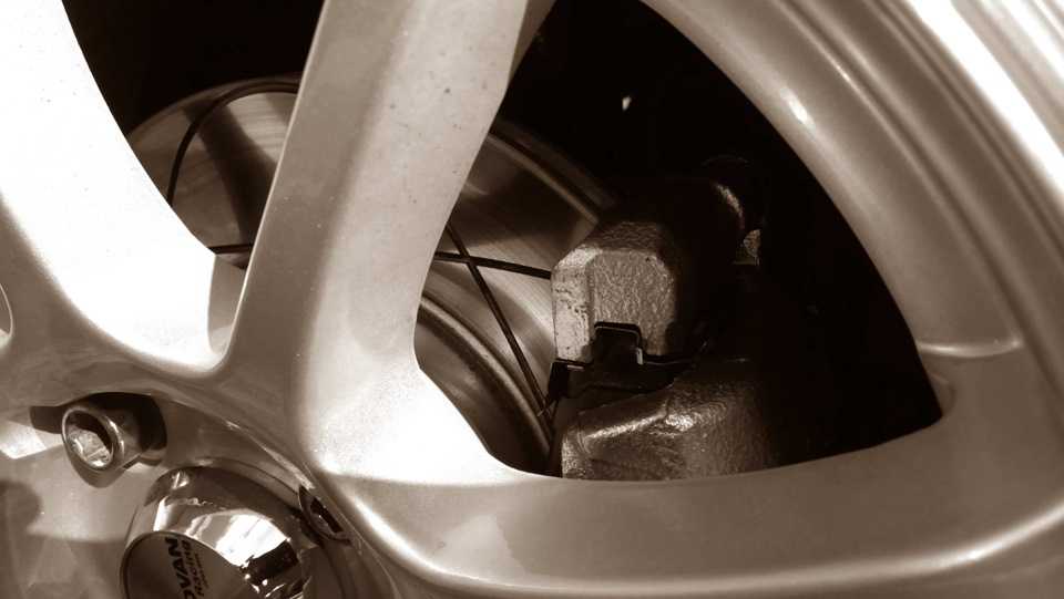 Затем обследуйте тормозной механизм – основное внимание уделите суппорту, тормозным колодкам и диску. Зажатость колодок определяется с торцов.