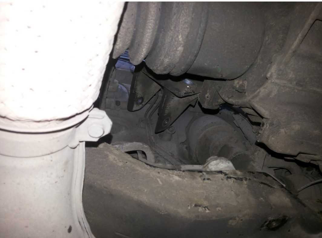 поэтому можно открутить его под машиной (ямы у меня нет в гараже, ставил машину на железные подставки, не забываем о страховке от падения машины), вот опора откручена но её нельзя вытащить т.к. мешает кронштейн,