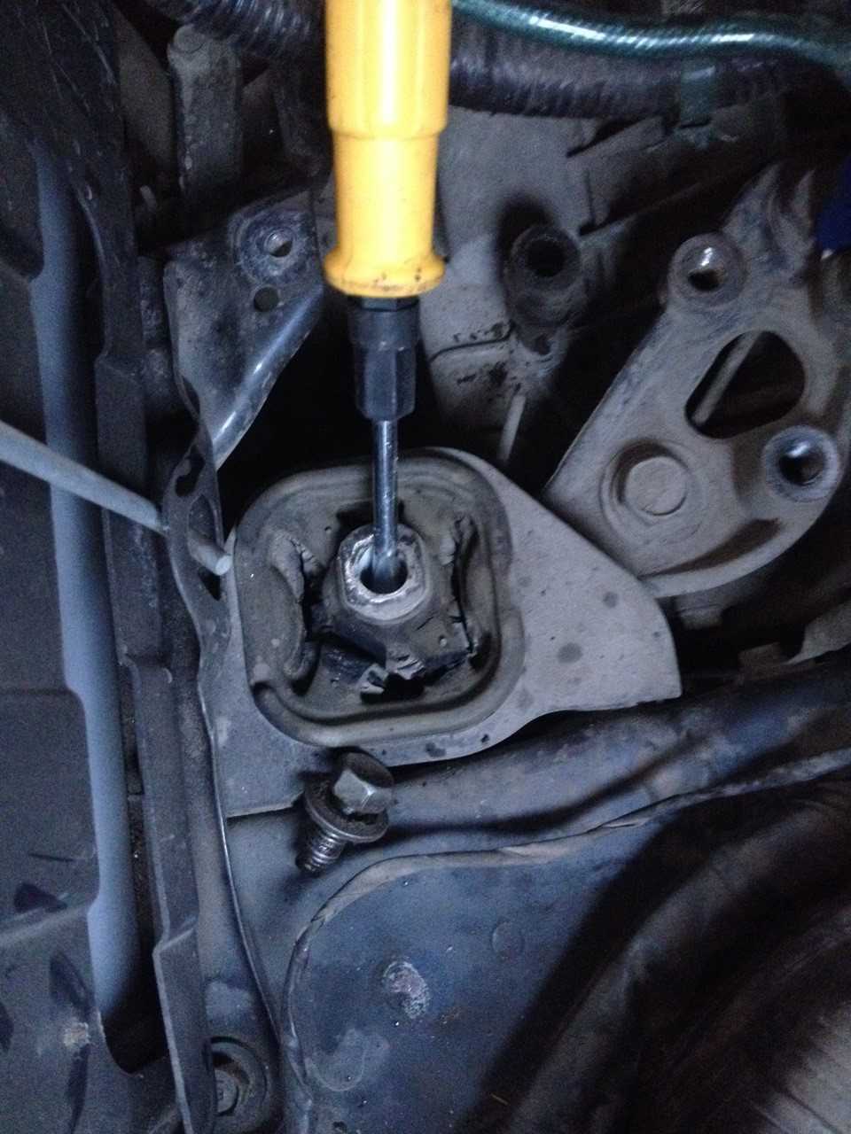 - Визуально оценить состояние верхней подушки автоматической коробки переключения передач. Для контроля ее состояния можно вставить отвертку и понаклонять в стороны. Трещины и разрывы будут сразу заметны.
