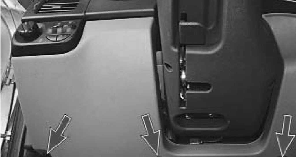 В салоне снимаем крышку блока предохранителей (крепиться на трех фиксаторах) поворачиваем их против часовой стрелки на 90° и тянем крышку на себя.