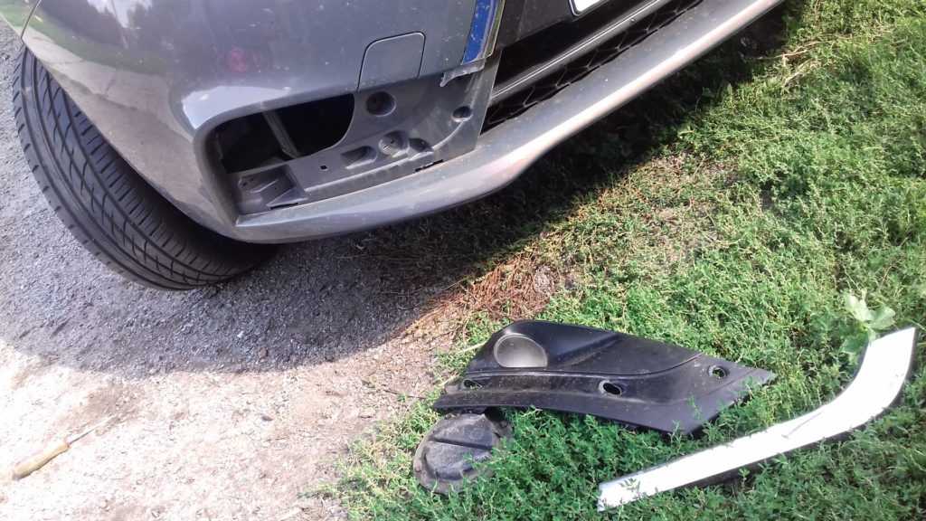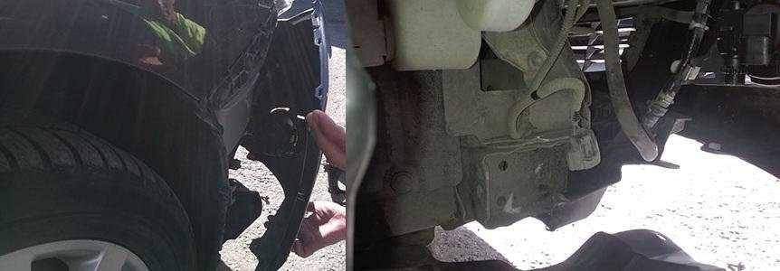 Снимаем бампер автомобиля для этого откручиваем множество шурупов снизу и сверху бампера, затем выводим его из зацепления от крыла и снимаем.