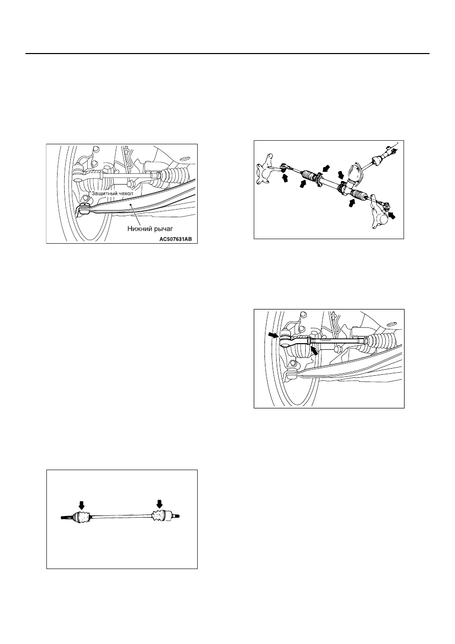 повреждений замените нижний рычаг в сборе.ПРИМЕЧАНИЕ. В случае наличия трещин или каких-либо повреждений защитного чехла возможно повреждение шаровой опоры.