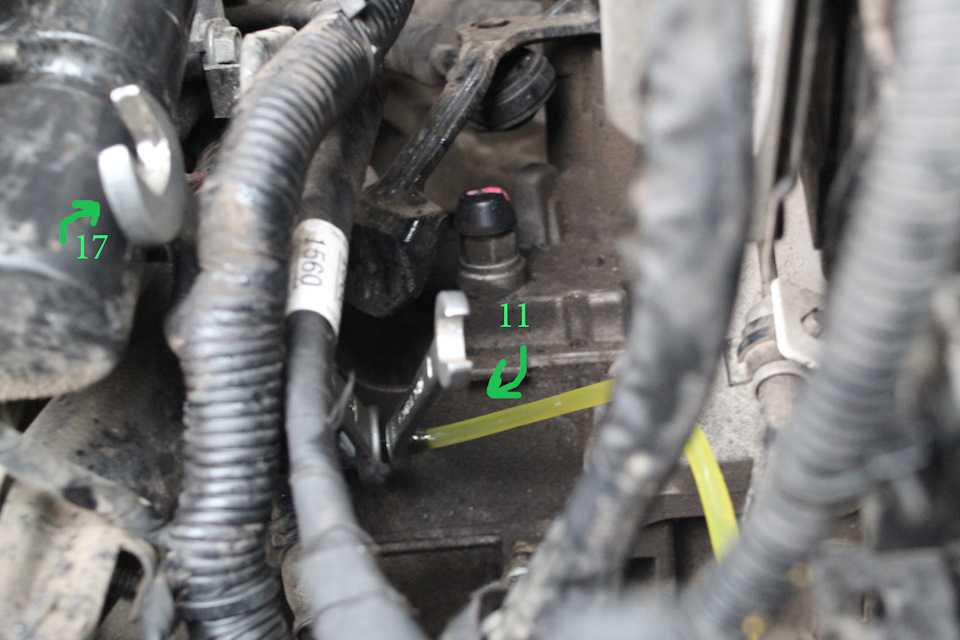 Прокачка сцепления.Гидропривод сцепления имеет общий бачок с тормозной системой.После прокачки всех тормозных механизмов необходимо прокачать привод сцепления и извлечь остатки старой тж.Штуцер, пока занимались тормозами уже откис и открутится очень легко без усилий.Но все равно это хлипкий механизм из пластика(не самое лучшее конструктивное решение) требует аккуратного обращения.Держим рожковым ключем на 17 и ключиком на 11 «отварачиваем», на штуцер одеваем шланжик.