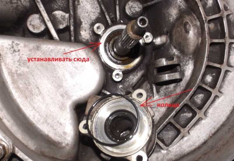 - дальше стоит заложить смазку в отверстие для первичного вала – там располагается коренной подшипник коленвала;