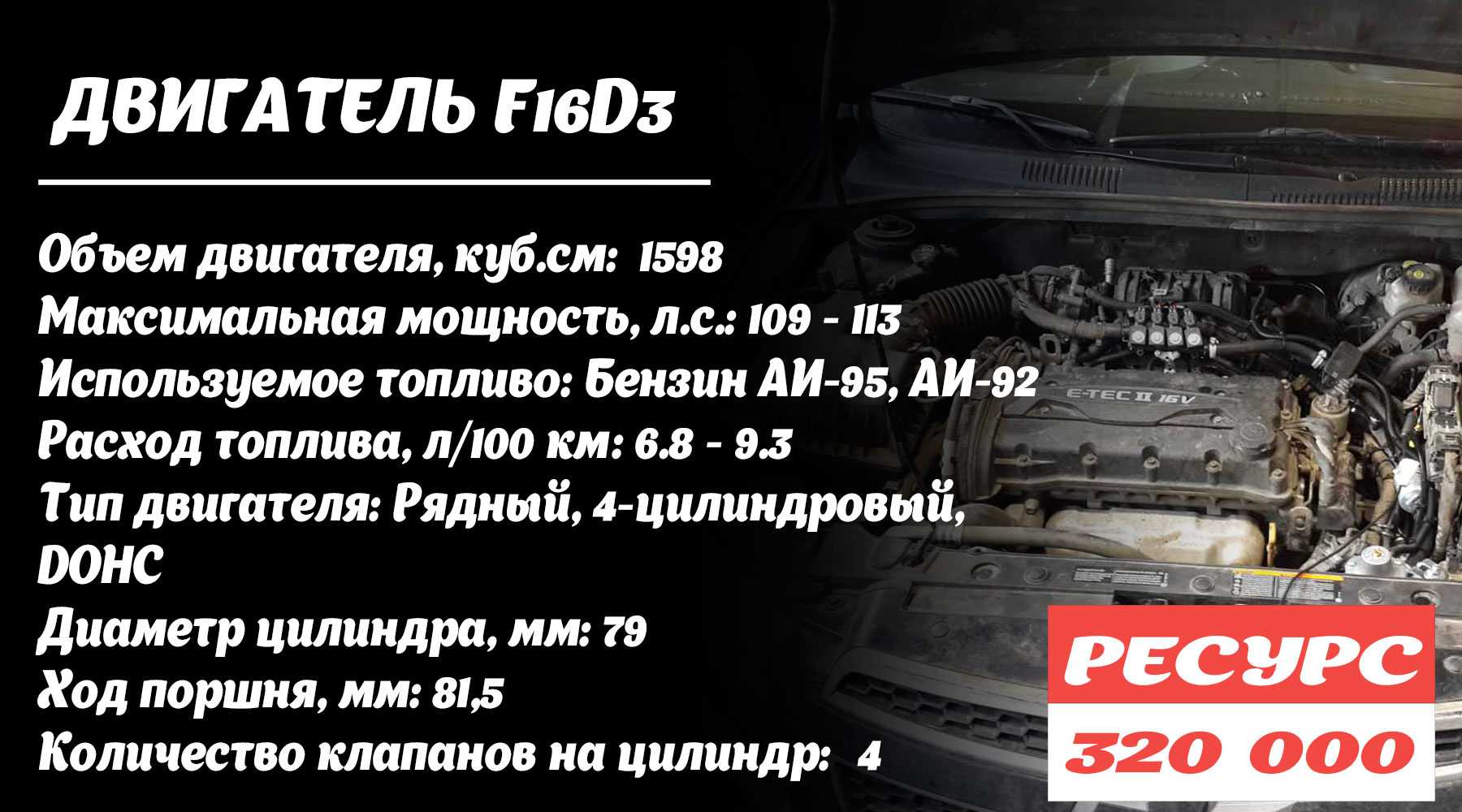 О движке F16D3 впервые стало известно в 2002 году. Тогда инженеры GM собрали новый мотор на старом блоке от F14D3, F18D3. В плане компоновки и конструкции фактически вышла точная копия опелевского мотора Z16XE, который хорошо был известен в «нулевых». Но уже F16D3 получился более современным и совершенным (в нем присутствует клапан системы рециркуляции отработанных газов EGR). Вполне естественно, что со временем двигатель начинает досаждать автовладельцу. Клапан время от времени заклинивает в открытом/закрытом положении от низкокачественного топлива. Во всем остальном F16D3 в точности повторяет F14D3, то есть, перенял проблемные места и «болезни» предшественника. В число слабых мест можно записать недостаточно качественную прокладку клапанной крышки (рано дает течь), преждевременно выходит из строя термостат и активно образуется нагар на клапанах.