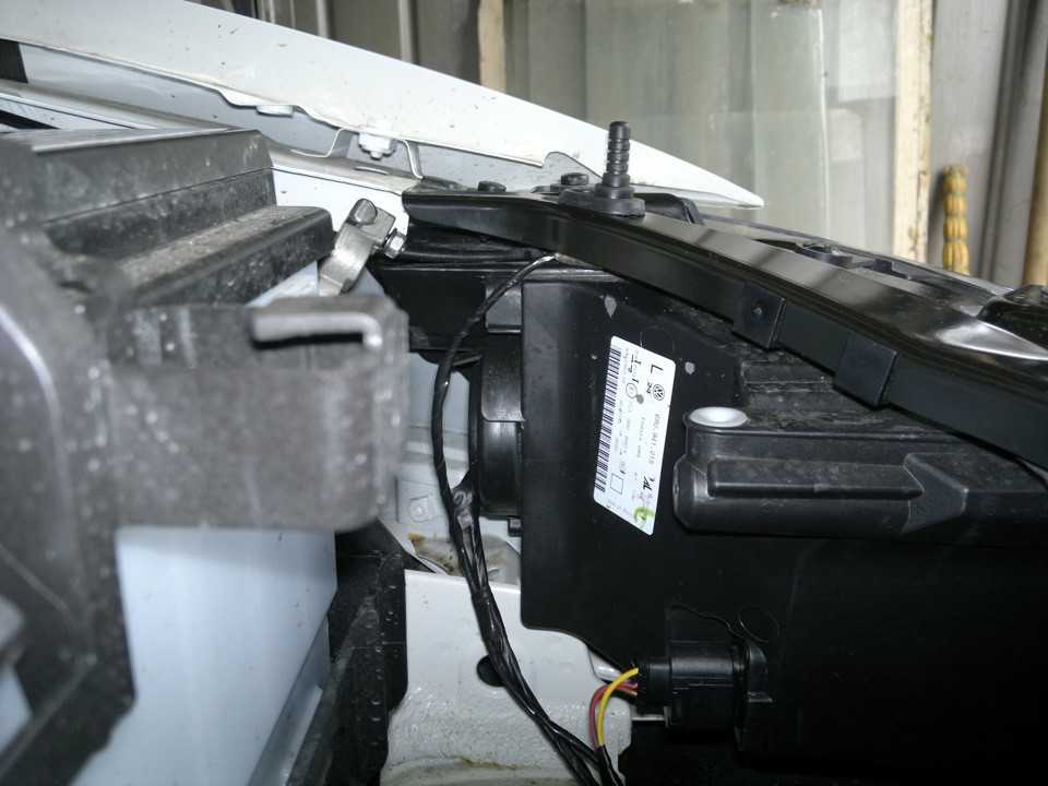 Далее следует установить концевик капота. В данном случае он расположен в стандартном отверстии над левой фарой (концевик был немного укорочен):
