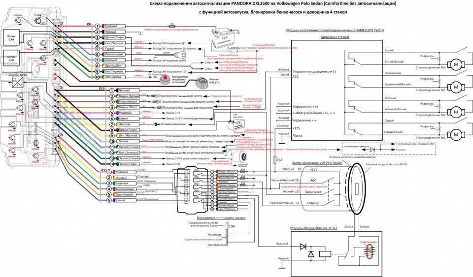Установка автосигнализации на VW Polo — Точки подключения, расположение и цвета проводов