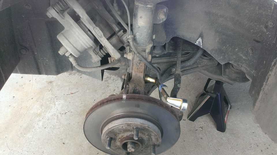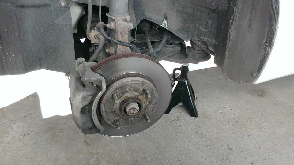 Снять муфту тормозного шланга вместе с кронштейном. Поворотный кулак и шаровую опору нужно отвести в сторону, опустив амортизаторную стойку переднего привода