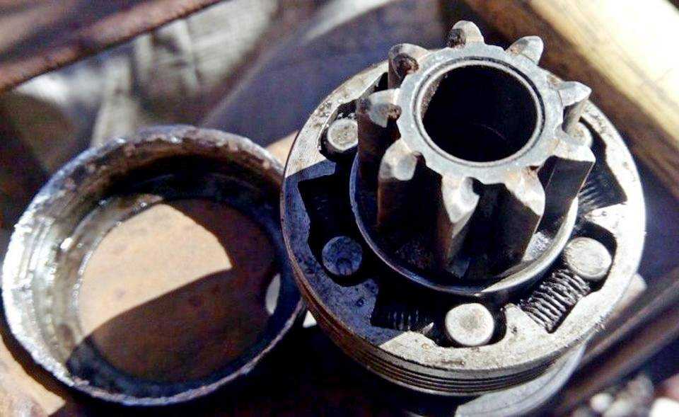 Если якорь стартерного узла работает, но при этом маховик не вращается, причина может заключаться в пробуксовке муфты либо повреждении шестеренок редуктора. В первом случае следует продиагностировать устройство на стенде и, если есть необходимость, поменять муфту, во втором — поменять поврежденные шестеренки (автор видео о самостоятельной установке механизма — канал Левша).