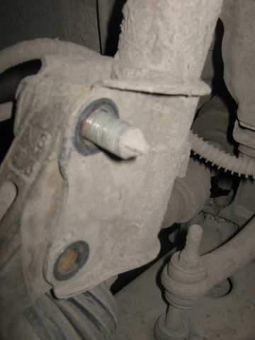 - отвинчивает крепление стойки на поворотном кулаке, отсоединяет датчик АБС, извлекает передний амортизатор в сборе.