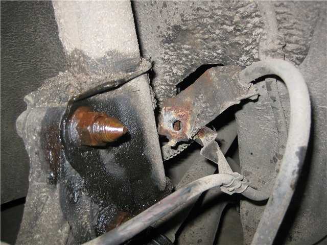 Через 5 – 7 минут, после действия средства, начинают откручивать болты крепления. Аккуратно снимают пластину закрепления тормозного шланга.