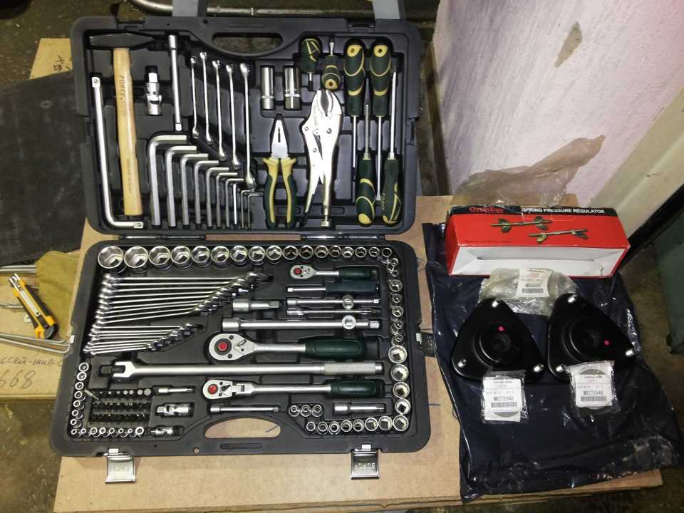 Набор инструментария практически стандартный. И чем больше лет в эксплуатации находится Mitsubishi Lancer IX, тем больший запас деталей, ключей появляется в гараже у опытного автовладельца. Их на момент ремонта следует лишь обнаружить в «закромах» гаража, систематизировать, при необходимости докупить, и спокойно решать вопрос, как поменять стойки на Лансер 9. Напомним перечень необходимых предметов.