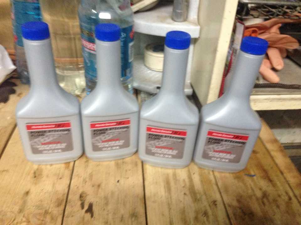 - Масло для гидроусилителя руля. Во избежание проблем в будущем рекомендуется использовать оригинальный сертифицированный продукт — Honda (код PSF-II). Если брать стандартные бутылки объемом 354 мл, то для полной замены жидкости понадобится не менее 3-4 штук;