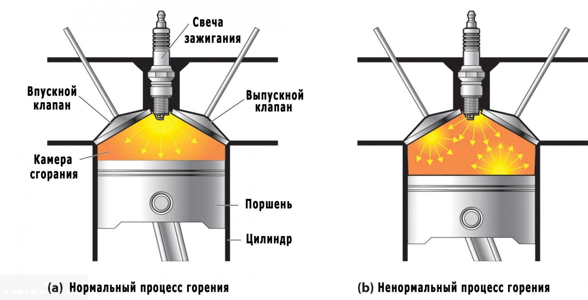 Почему топливно-воздушная смесь детонирует в камере сгорания. Причины, вызывающие детонацию. Последствия детонационного сгорания топлива в цилиндрах ДВС.