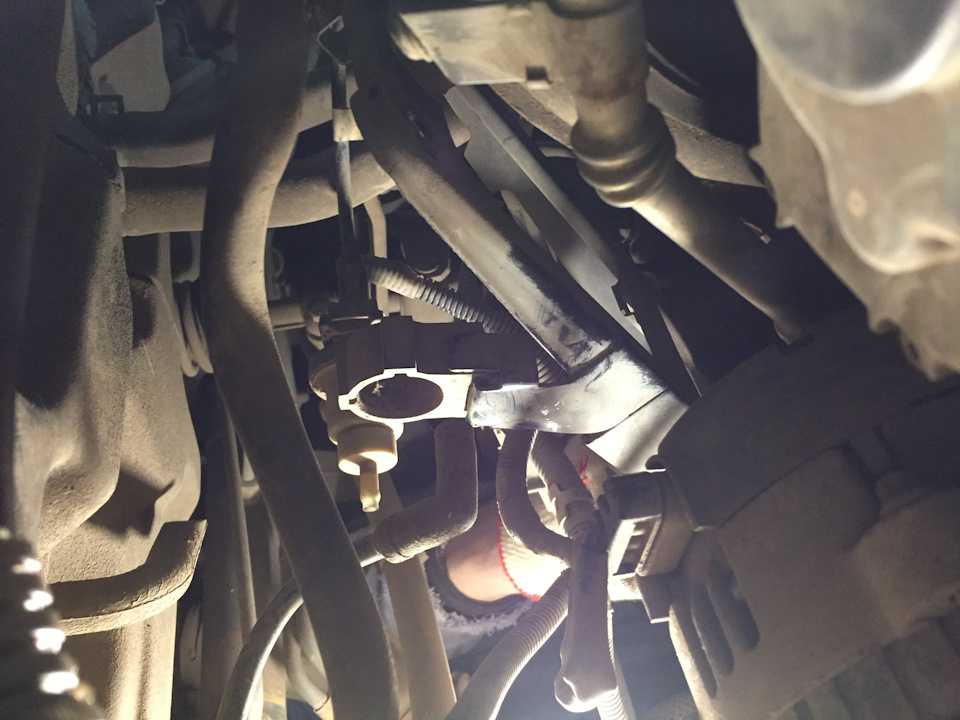 Снятие и замена датчика производится из-под автомобиля. Для наглядности операции показаны со снятым впускным трубопроводом, но для замены датчика снимать его не надо.