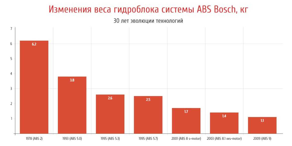 Как менялся вес гидроблока системы ABS Bosch с развитием технологий